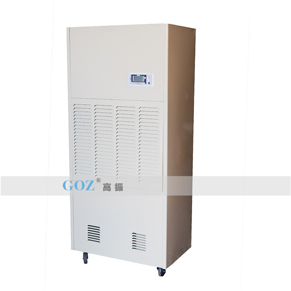 高振商用除濕機(jī)通過風(fēng)機(jī)將潮濕空氣抽入機(jī)器內(nèi)部,通過壓縮機(jī)制冷將蒸發(fā)器降溫至露點(diǎn)以下,潮濕空氣經(jīng)過蒸發(fā)器在表面凝結(jié)成水,匯集至接水盤后,流入水箱中,干爽空氣經(jīng)冷凝器重新加熱由出風(fēng)口排出,這樣不斷循環(huán)將室內(nèi)濕度降低。