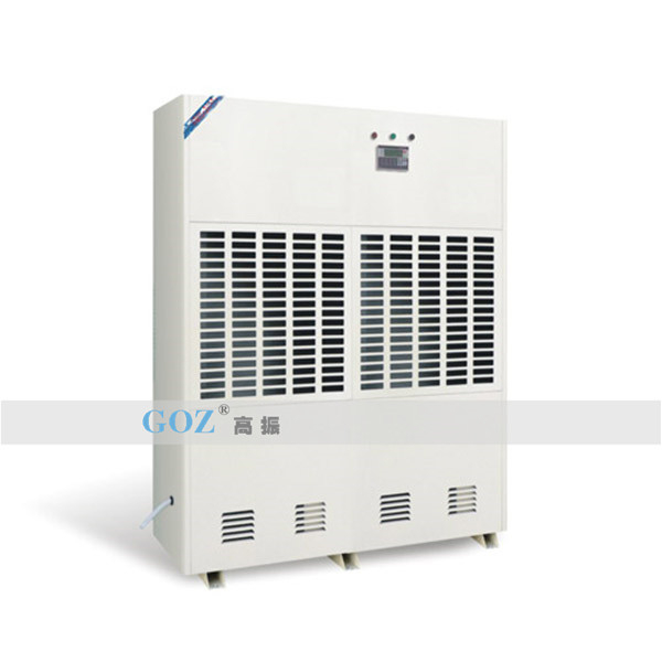 高振商用除濕機(jī)通過風(fēng)機(jī)將潮濕空氣抽入機(jī)器內(nèi)部,通過壓縮機(jī)制冷將蒸發(fā)器降溫至露點(diǎn)以下,潮濕空氣經(jīng)過蒸發(fā)器在表面凝結(jié)成水,匯集至接水盤后,流入水箱中,干爽空氣經(jīng)冷凝器重新加熱由出風(fēng)口排出,這樣不斷循環(huán)將室內(nèi)濕度降低。